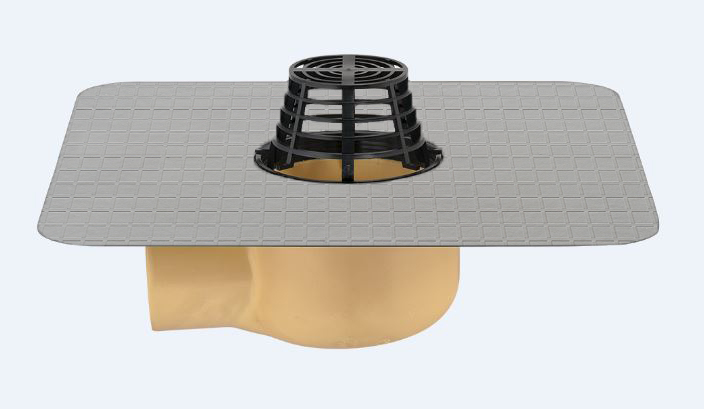 Freispiegelgully mit eingeschäumter KÖSTER TPO-F Manschette, abgewinkelt, mit Kiesfang