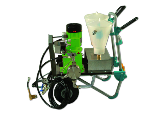 Electrical 2C injection pump with stageless adjustable mixing ratio (gel : water). Operating pressure is approx. 30 bar. The maximum delivery rate is approx. 2.5 l / min.