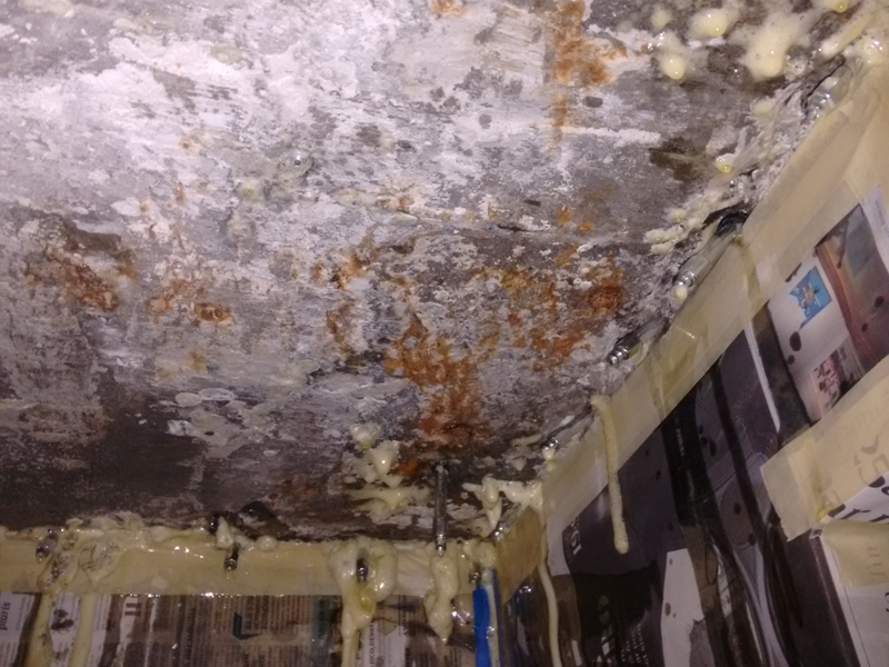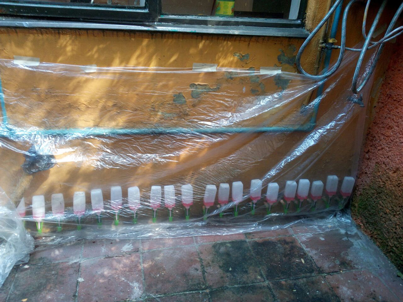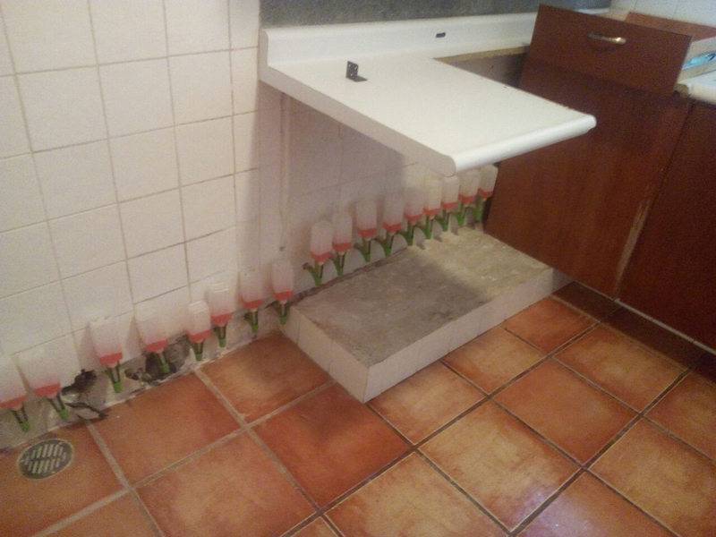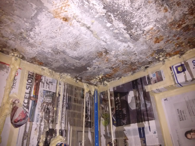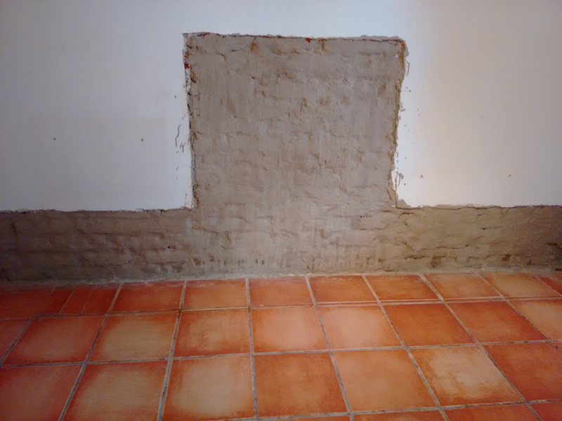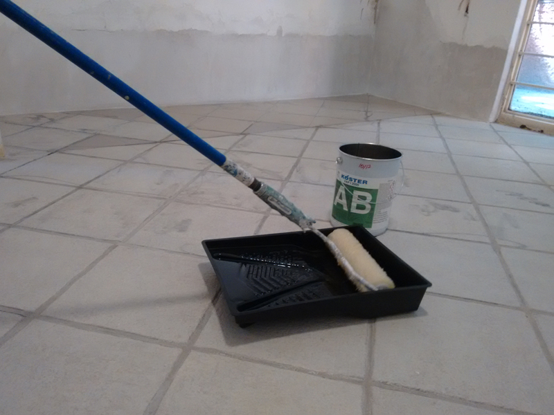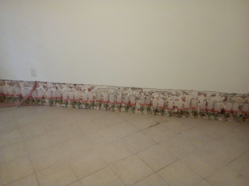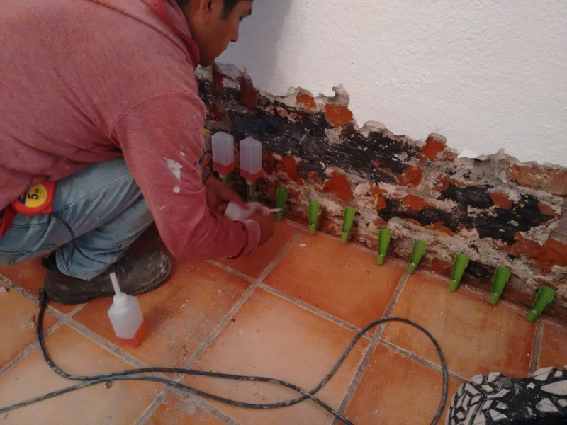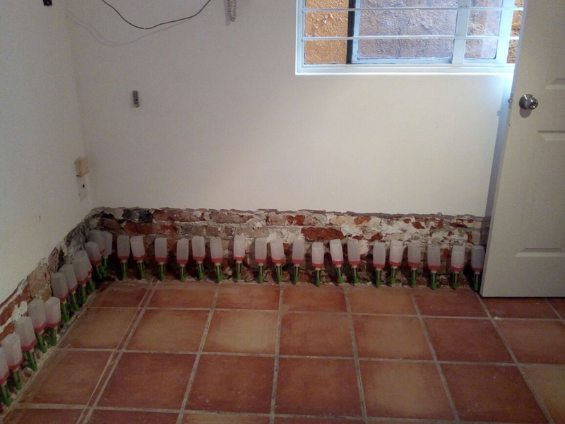 Instalación de barreras horizontales con Crisin 76 Concentrado y KÖSTER NB1 gris Bloqueo de vapor de piso de loseta con KÖSTER VAP I 2000. Sellado de filtraciones en techo y juntas con inyección de KÖSTER 2IN1. Inyección de cortina con KÖSTER 2IN1 en muro colindante y KÖSTER NB1 gris.
