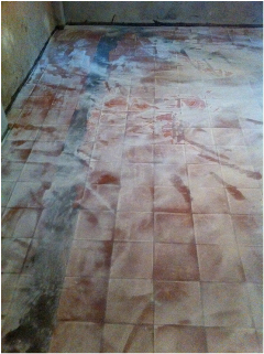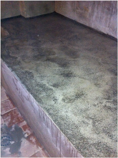 Raspagem e lixagem opera eliminação da camada superior. Aplicação de barreira ao vapor e selante epoxy pigmentado.