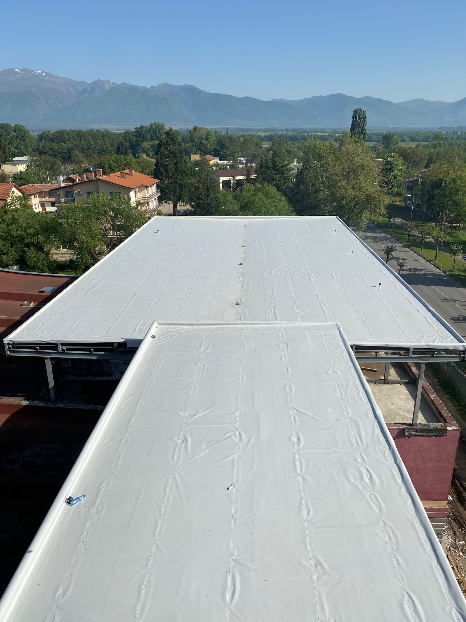 3.000 m² Roof waterproofing with mechanically fastened membranes; substrate – old bitumen membrane and mineral insulation
